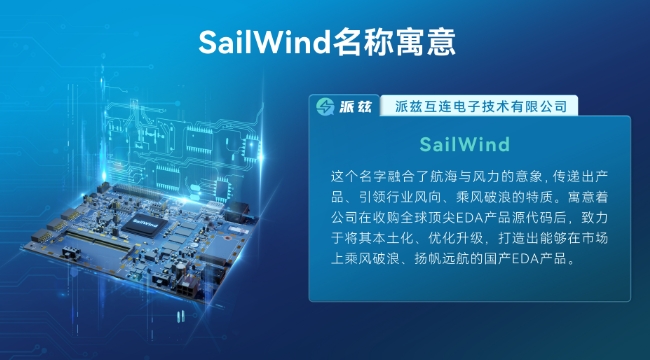这个名字融合了航海与风力的意象,传递出产品、引领行业风向、乘风破浪的特质。寓意着公司在收购全球顶尖EDA产品源代码后,致力于将其本土化、优化升级,打造出能够在市场上乘风破浪、扬帆远航的国产EDA产品。